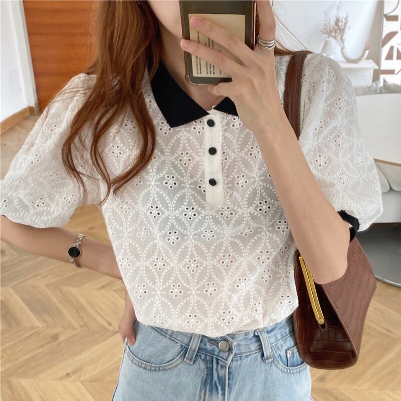サマーカラー刺繍スリーブシャツ トップス 夏物 ICC_レディース0884130