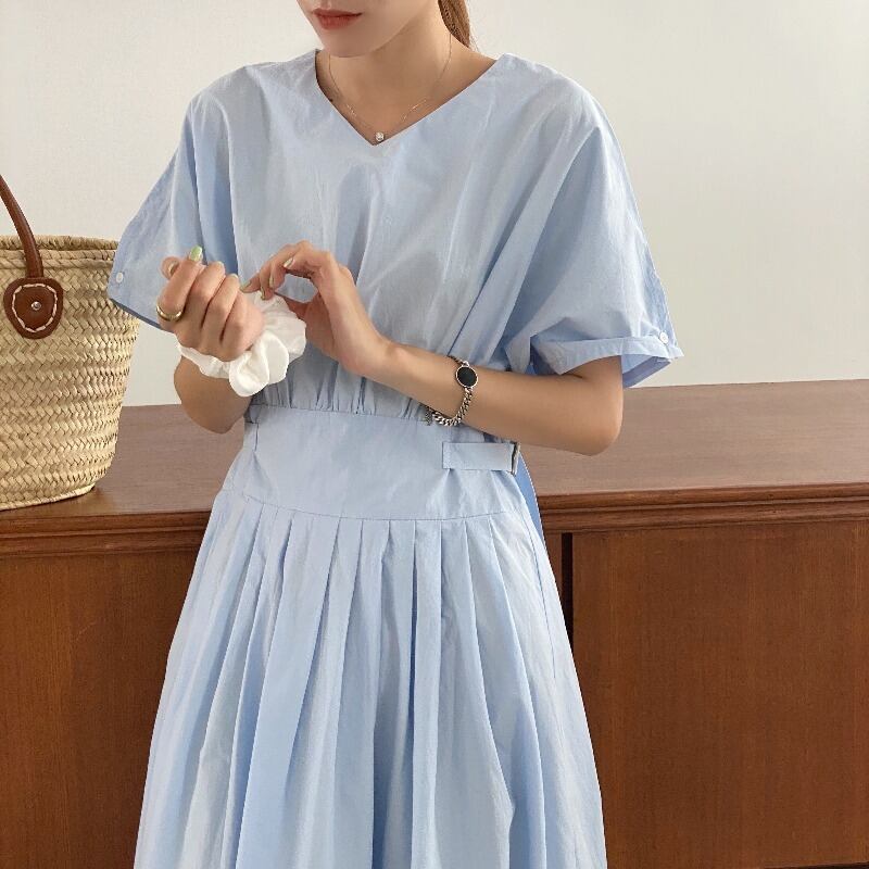 スカート サマーVネックバックプリーツドレス レディース 夏物 ICC_レディース6325834