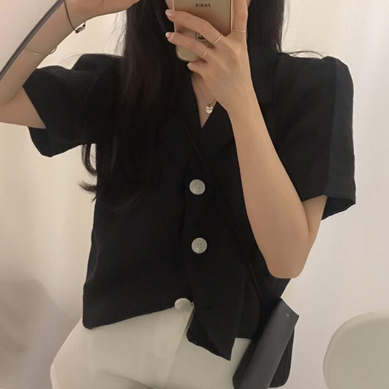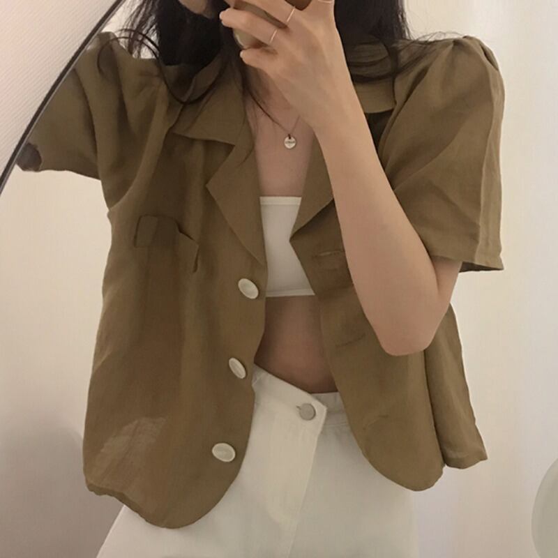 スタンダードソリッド カラーシャツ ショートジャケット レトロ ソリッドカラー ICC_レディース1327702