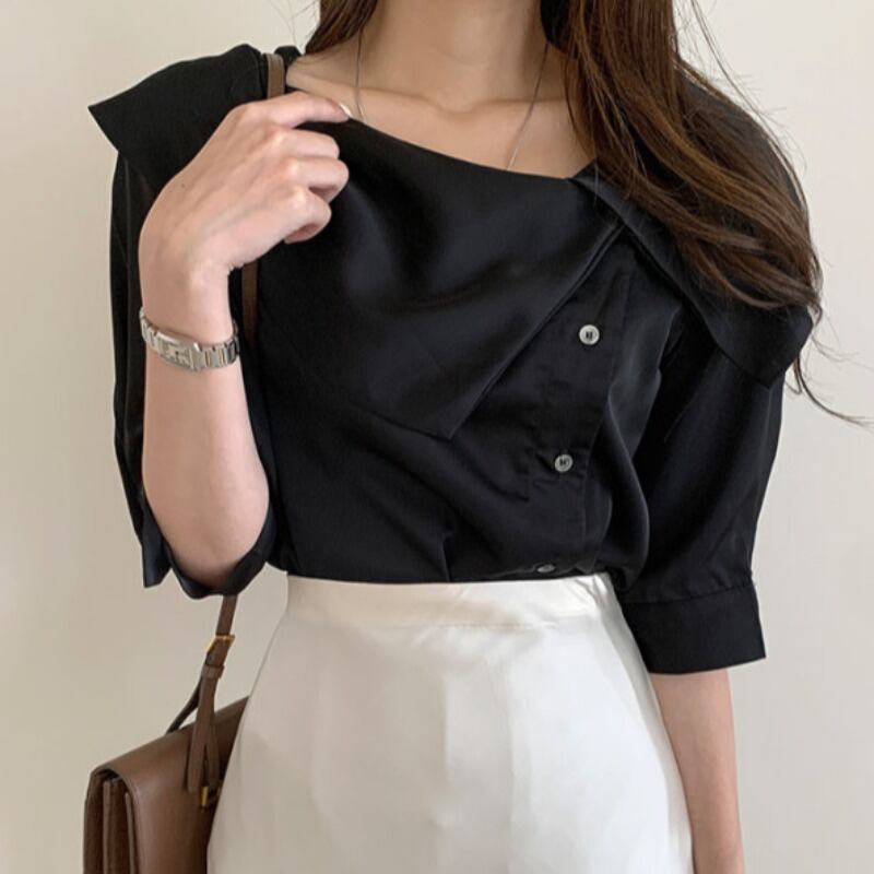 シャツ サテントップス サマー エレガント 夏物 ICC_レディース3094958