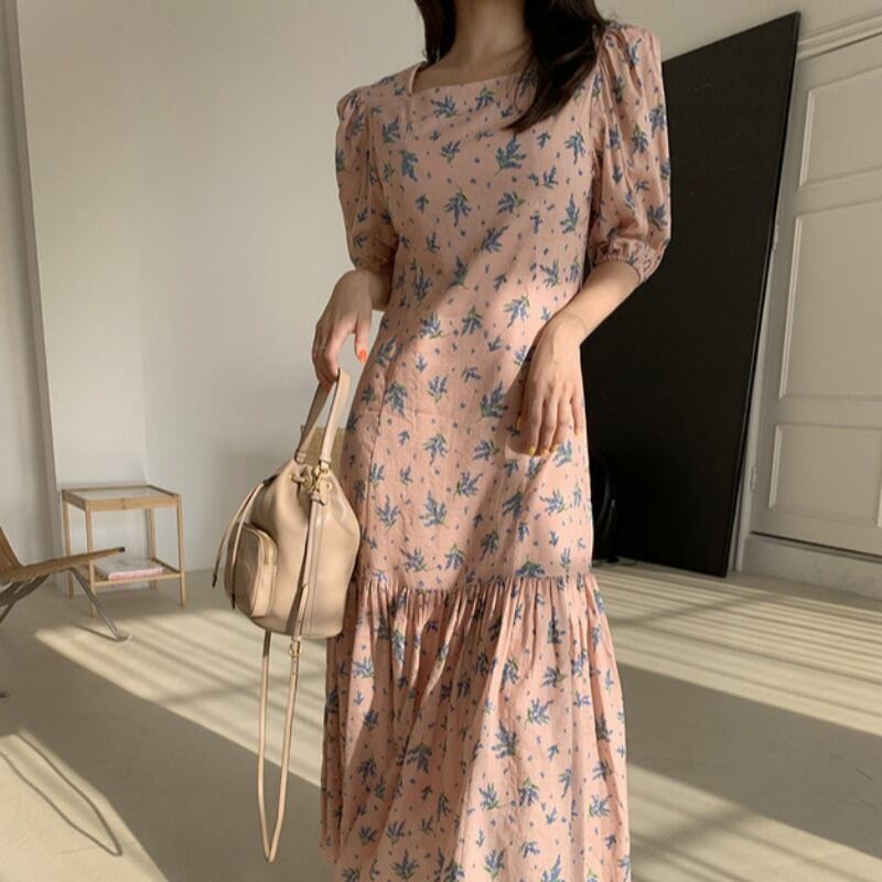 スカート サマー薄手カラースリーブフローラルドレス 夏物 花柄 スクウェア ICC_レディース4960586
