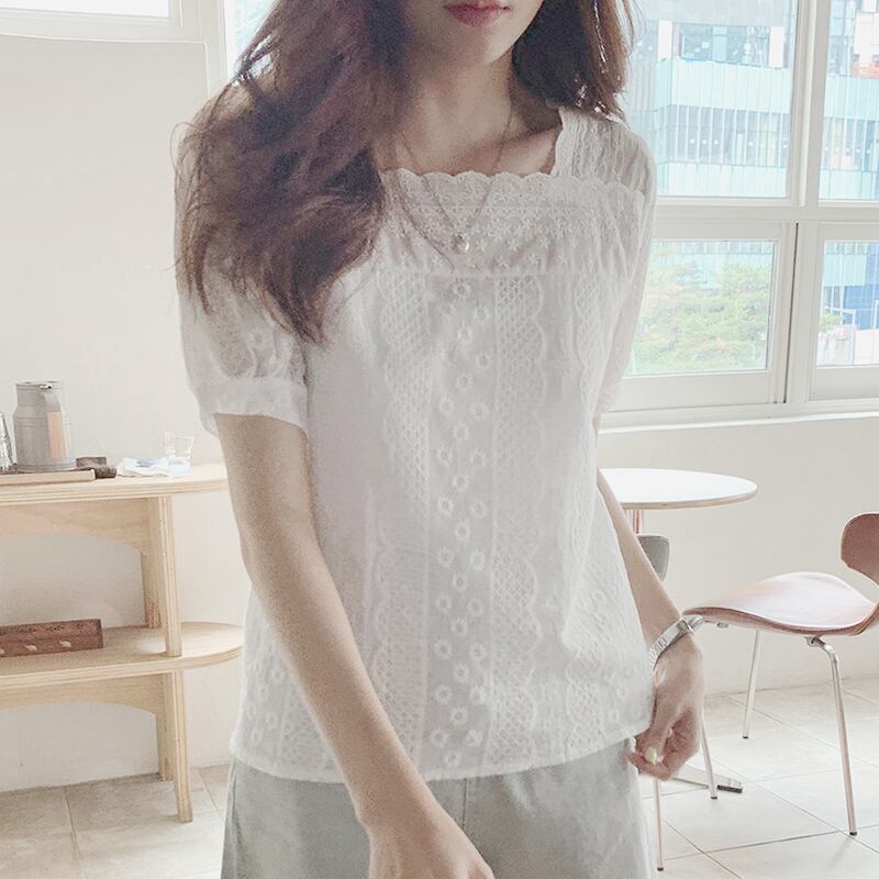 サマーシャツ ホワイトカラー レッド 刺繍 大人ガーリー スウィート キュート カジュアル 夏物 スクウェア 左左右右1533105