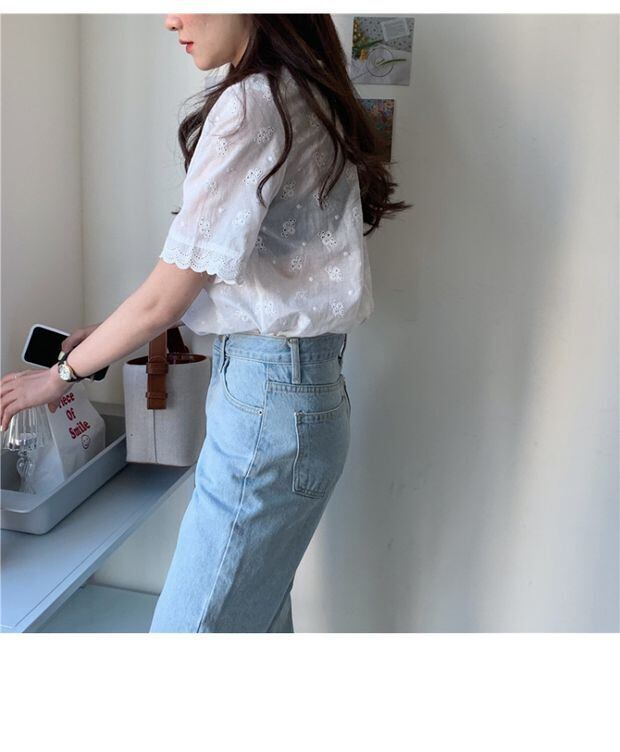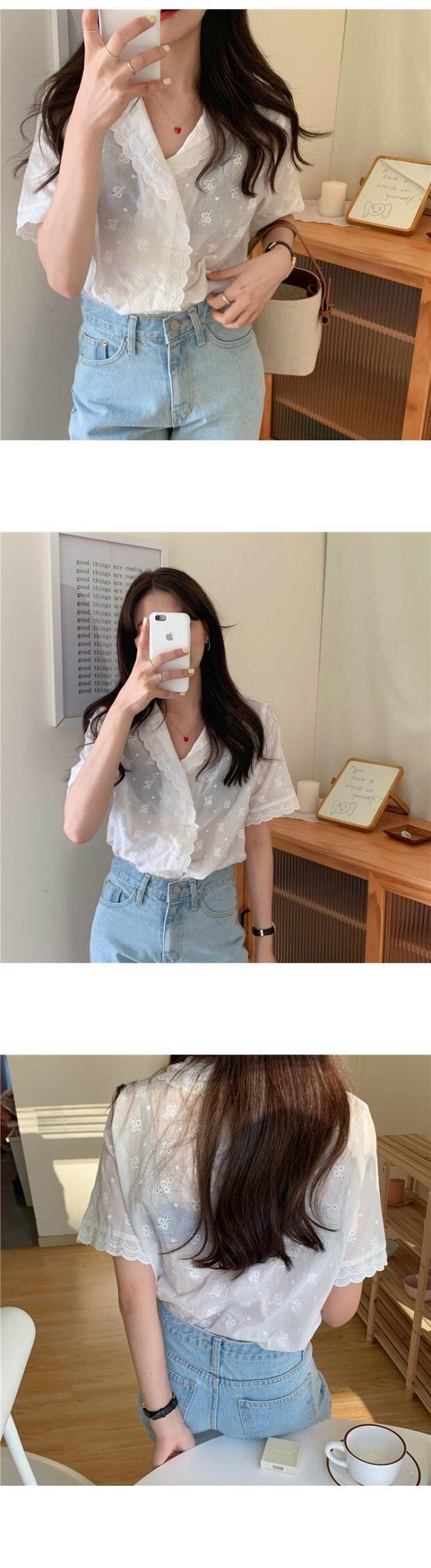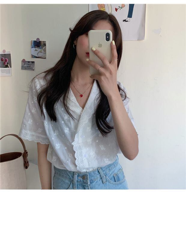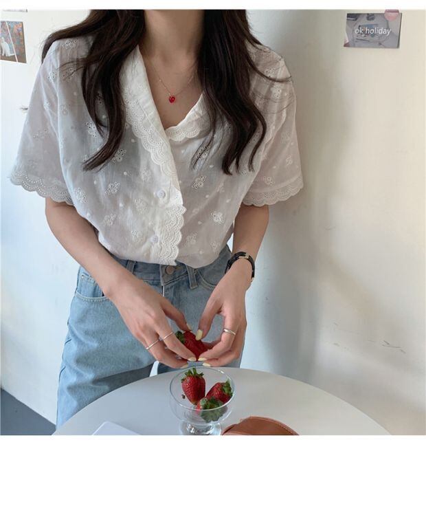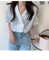 サマースタンダードシャツ 薄手レース レッド レトロ 刺繍 大人ガーリー スウィート キュート カジュアル 夏物 左左右右2250796