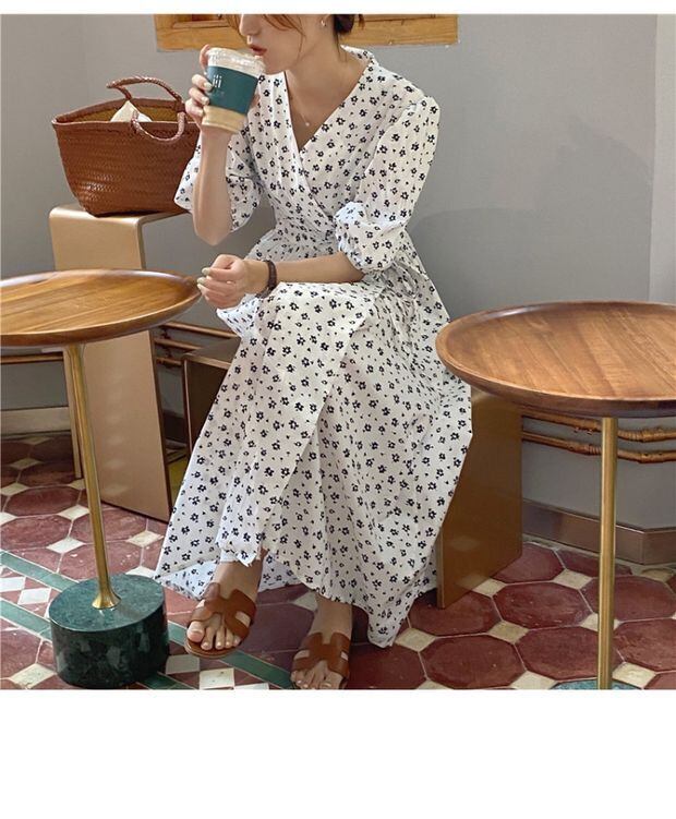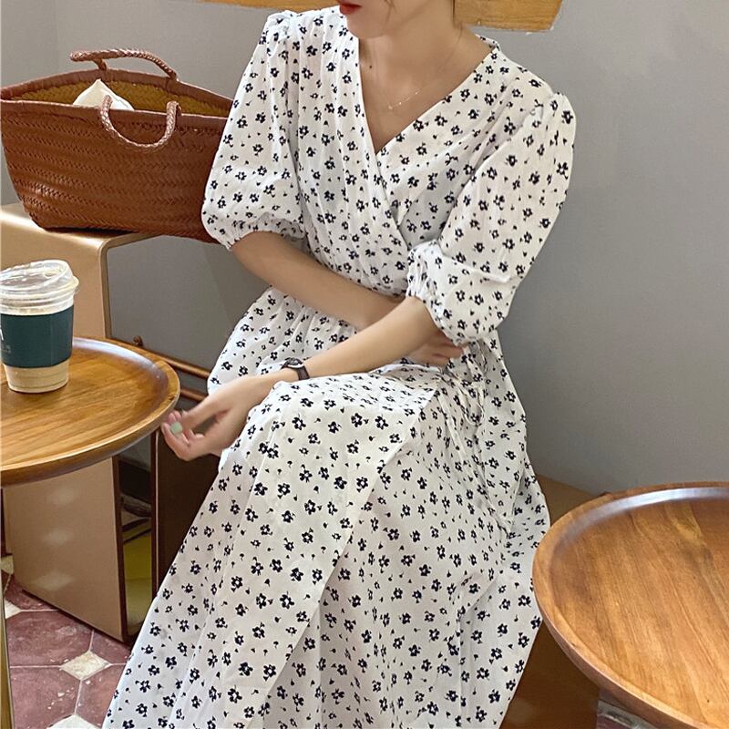 サマーロングスカート ルーズスタンダードウェストフローラルドレス レトロ 夏物 花柄 左左右右5038601