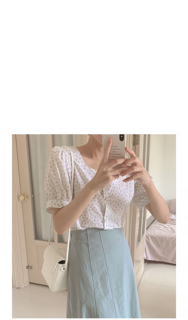 フローラルトップス 半袖スリーブシャツ ツーピース セット ハイウェストウェストスカート ショート ハーフスリーブ 大人ガーリー スウィート キュート カジュアル 花柄 左左右右9367082