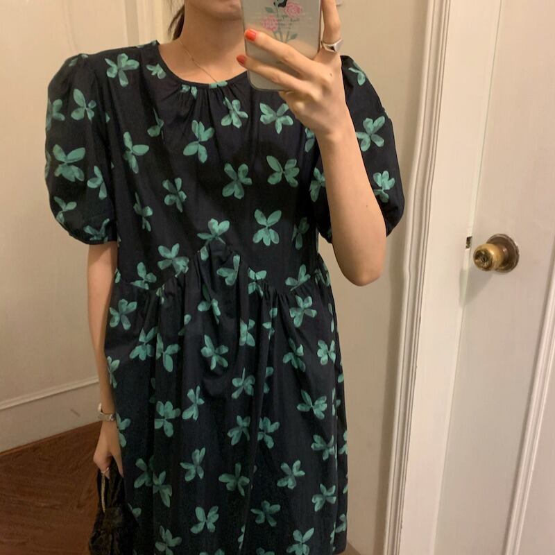 スカート サマーFlowerデザイン プリントラウンドネック薄手ドレス 夏物 Oネック フラワーデザイン ICC_レディース4175185