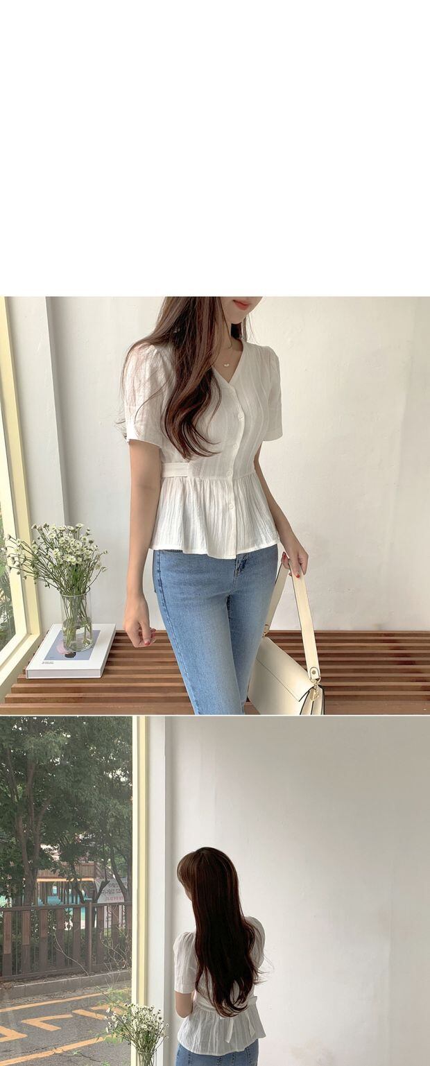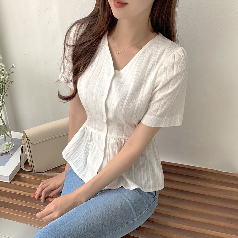 サマーウェストスタンダードシャツ 半袖スリーブVネック ショート レトロ ハーフスリーブ 大人ガーリー スウィート キュート カジュアル 夏物 左左右右0723153