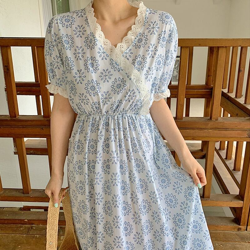 スカート サマースタンダードレースVネックドレス レディース レトロ 夏物 ステッチ ICC_レディース1841878