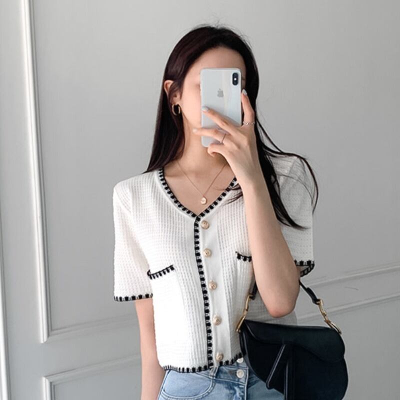 サマースタイルVネックニットセーター ショートカーディガントップス 夏物 シルク ICC_レディース6774901