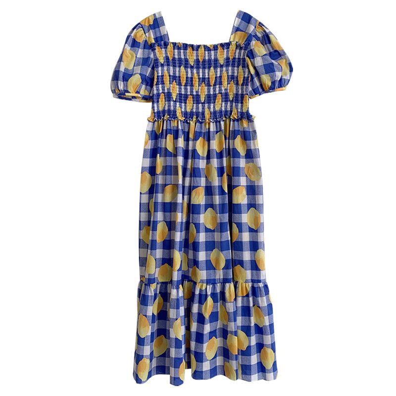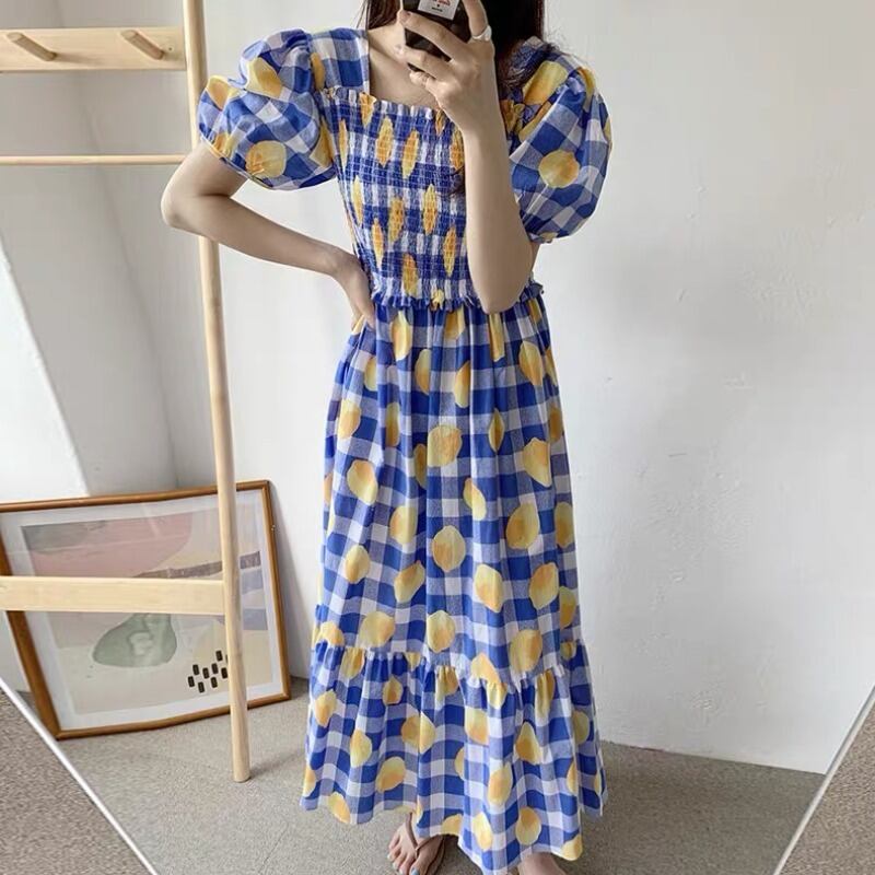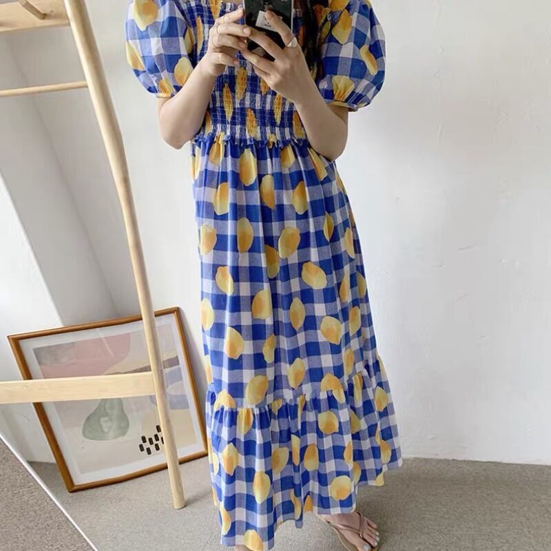 スカート サマープリント柄格子柄ストレッチスリーブドレス エラスティック 伸縮 大人ガーリー スウィート キュート カジュアル 夏物 ICC_レディース8830000
