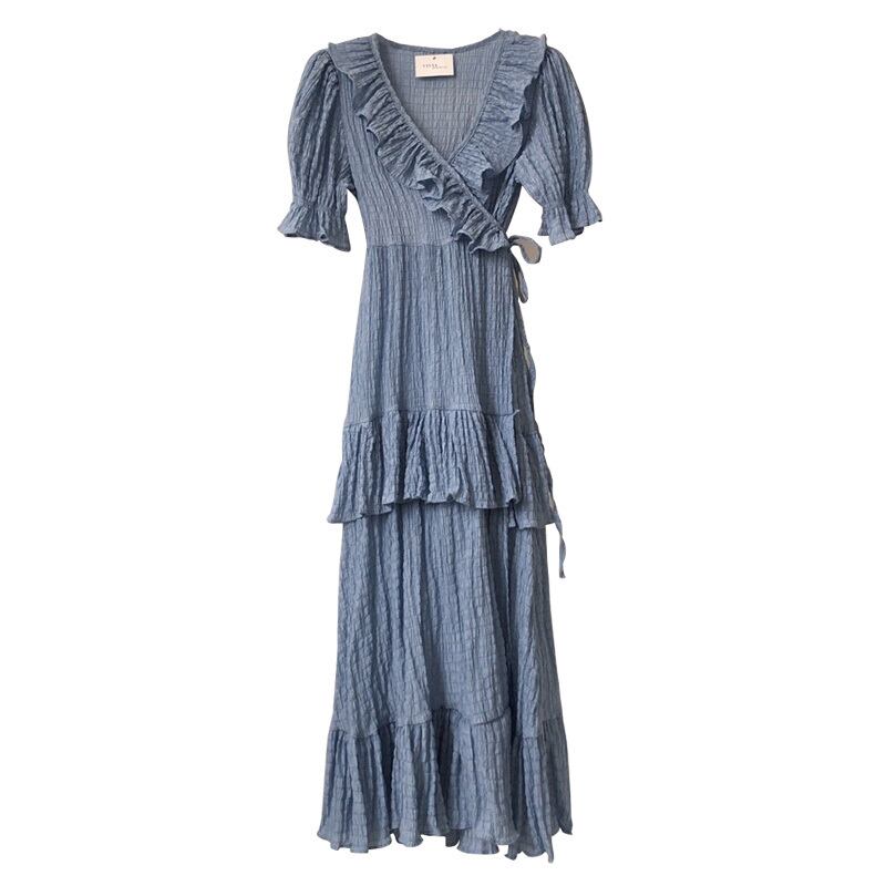 スカート サマーワンピース薄手Vネックロングドレス レディース 夏物 ICC_レディース7557436