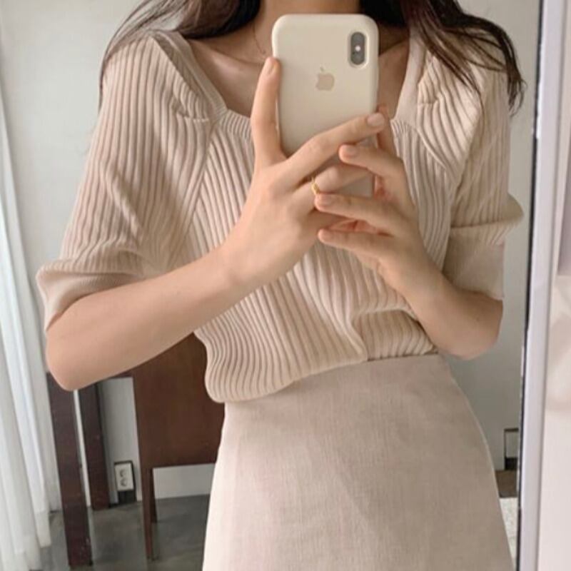 スタイルカラーストライプウェストスリーブトップス セーター Tシャツ レディース スクウェア ICC_レディース0342918
