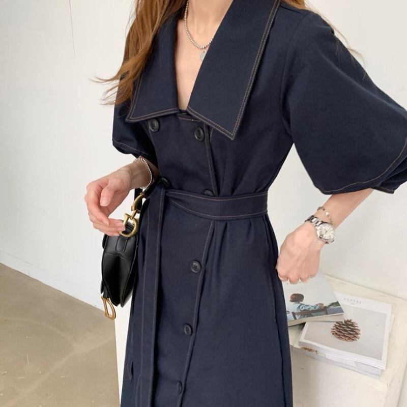 オータムスタンダードダブルブレストストラップ ウェスト薄手ロングジャケット レトロ 秋物 ICC_レディース9501114