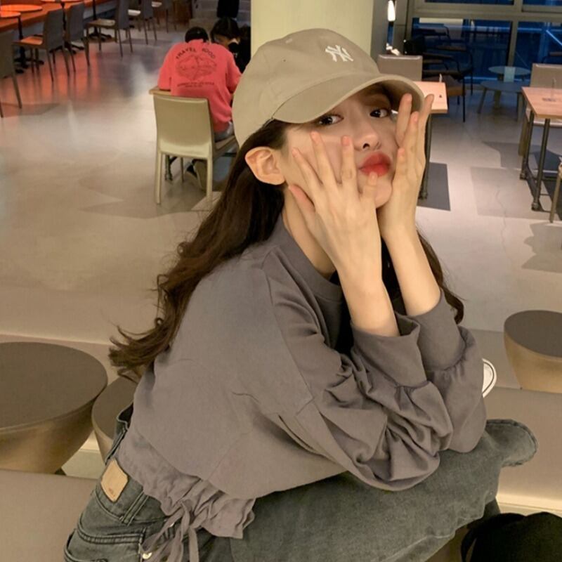 ラウンドネックルーズソリッド カラーカジュアルギャザースリーブショートTシャツ レディース Oネック ソリッドカラー ICC_レディース4385646