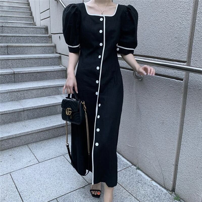 スカート サマースタンダードカラーロングドレス レトロ 夏物 スクウェア ICC_レディース4479519