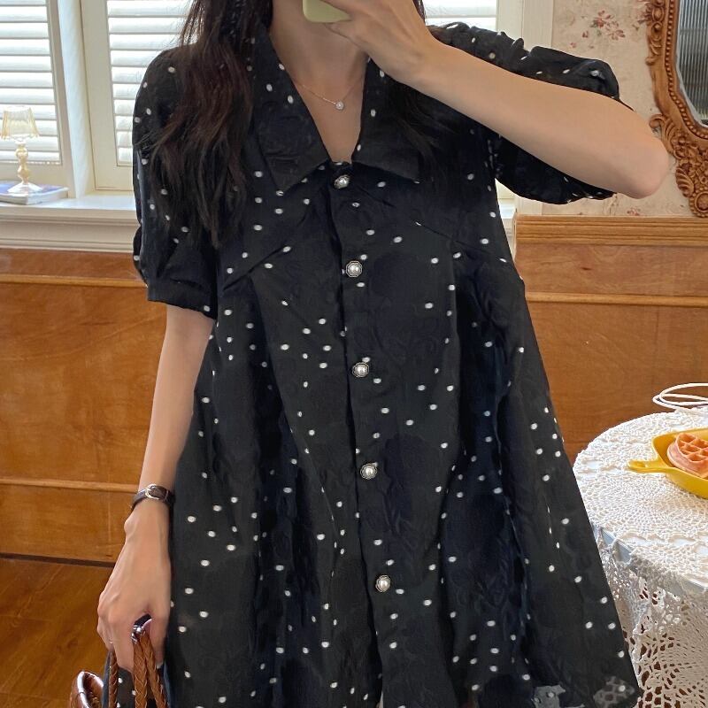 スカート サマー水玉ドレス ブラックショートレディース 大人ガーリー スウィート キュート カジュアル 夏物 ICC_レディース9077813