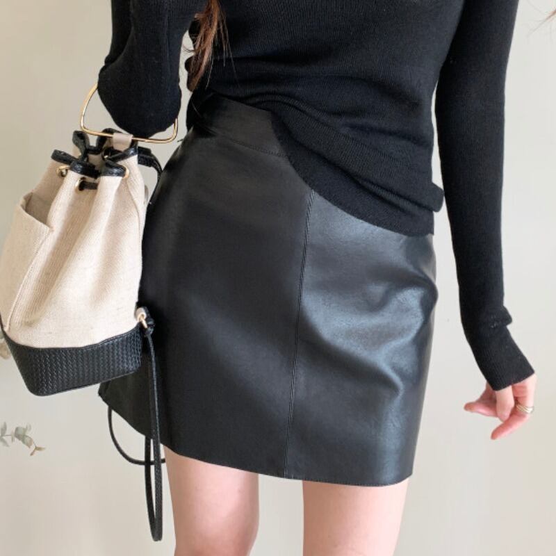 ハイウェストウェストスカート レザー薄手ショート ICC_レディース9062611
