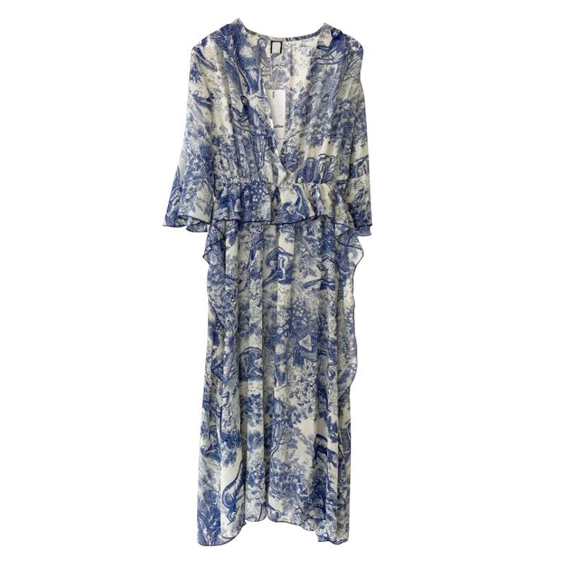 スカート サマープリントVネックスリーブドレス レディース レッド エレガント 夏物 ICC_レディース5390043