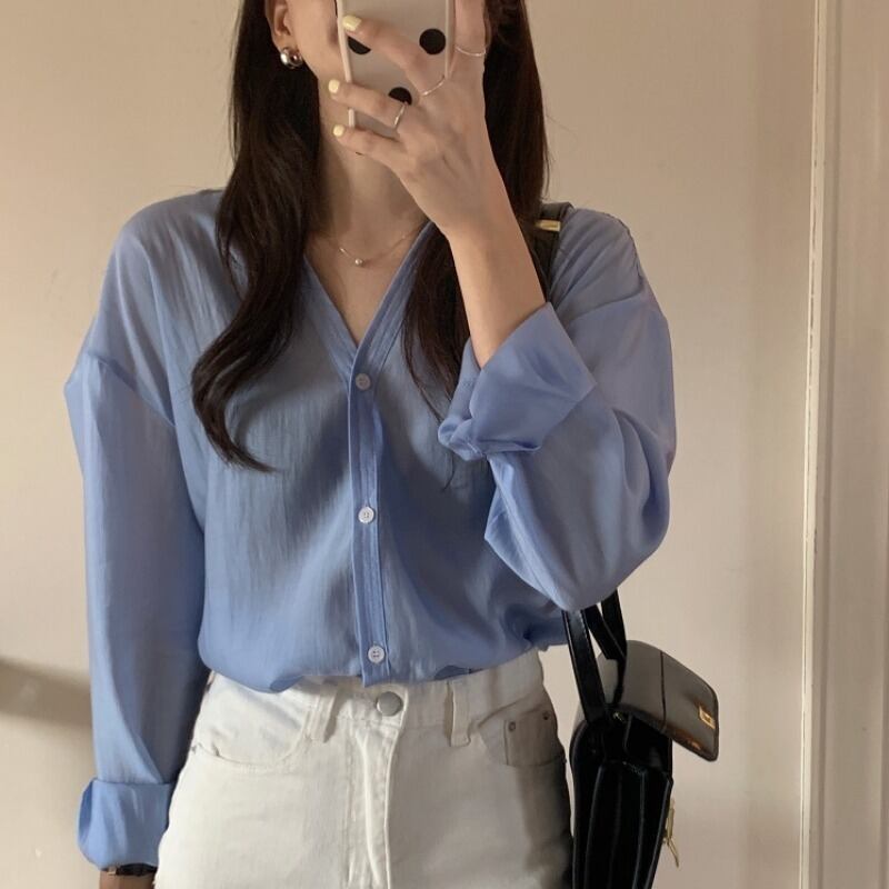 シャツ スタイルサマーVネックルーズ薄手トップス ロング 夏物 ICC_レディース4834402