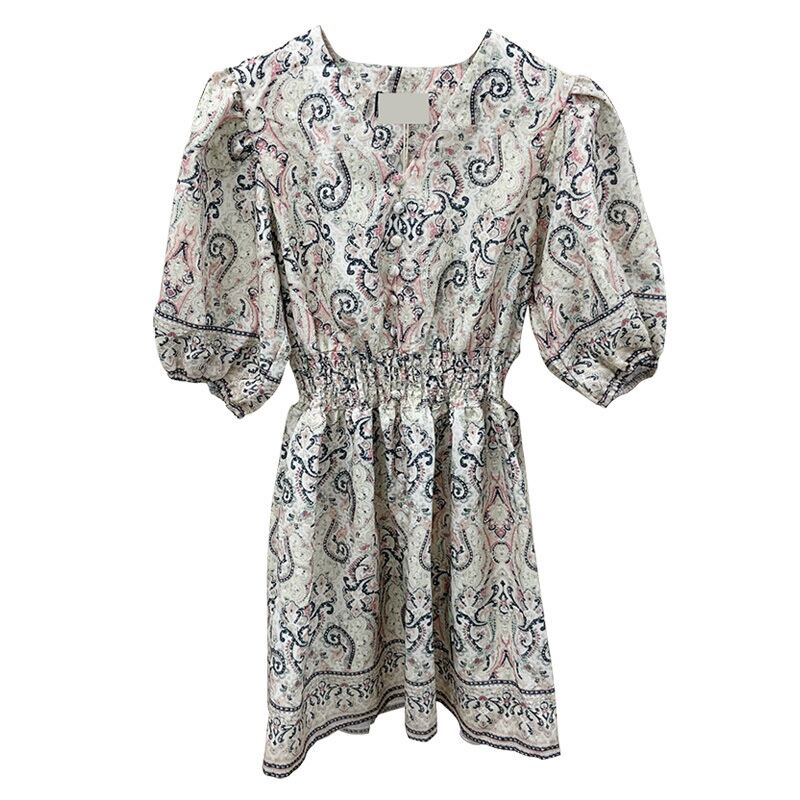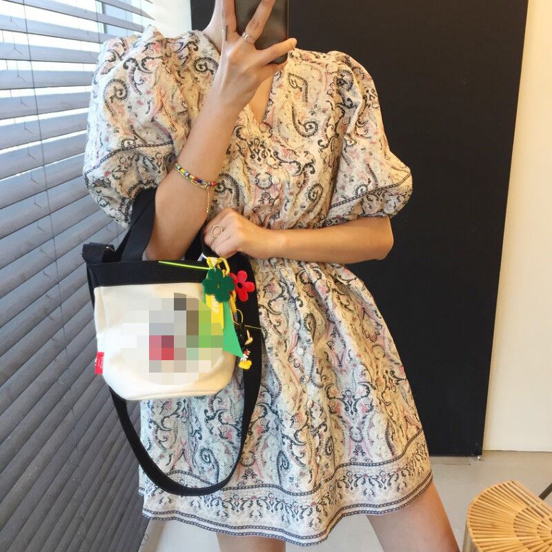 Vネックスタンダードスリーブスカート ドレス レトロ ICC_レディース7431651