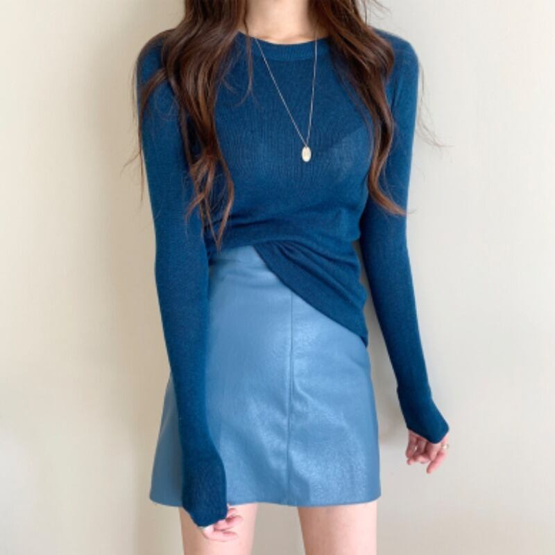 薄手セーター ニットオータムウィンタースタイルスリムシャツ ロング 秋物 冬物 シルク ICC_レディース3900013