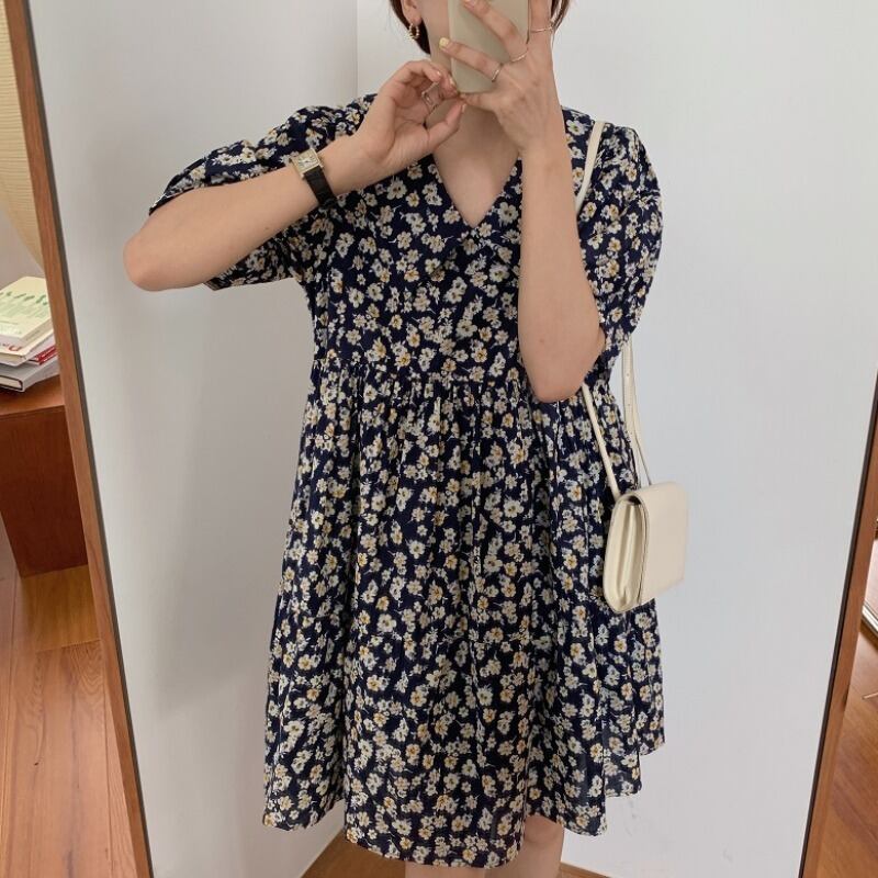 スカート サマーフローラルVネックスリーブショート薄手ドレス レディース 大人ガーリー スウィート キュート カジュアル 夏物 花柄 ICC_レディース0498445