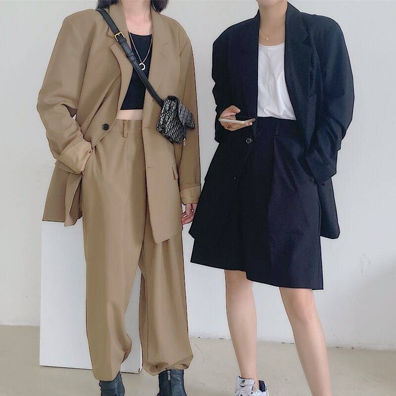 色:黒いジャケット,カーキ色のコート,黒いズボン,カーキ色のズボン,黒のショートパンツ,カーキショートパンツ