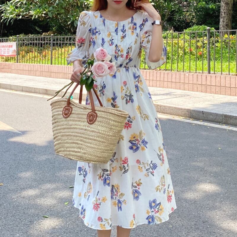 スタンダードスリーブドレス ウェスト薄手プリント柄 レトロ ICC_レディース8339478