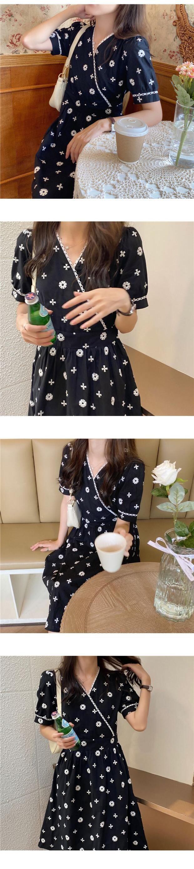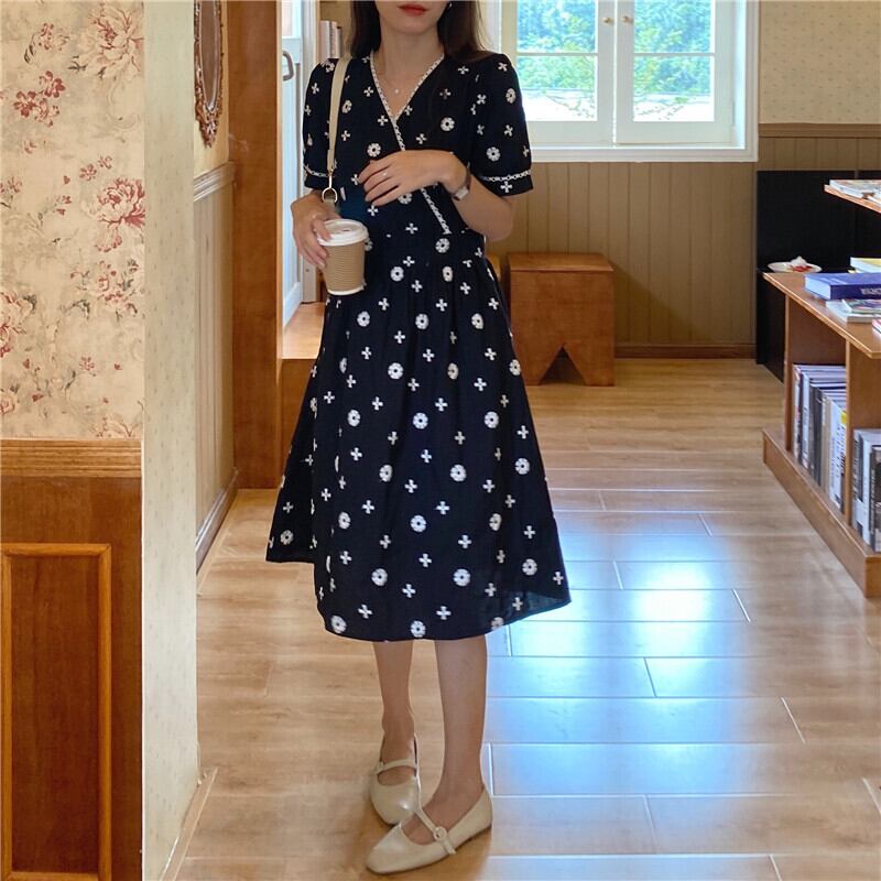 サマーVネックスカート ウェスト薄手ドレス レッド 刺繍 夏物 左左右右0645740