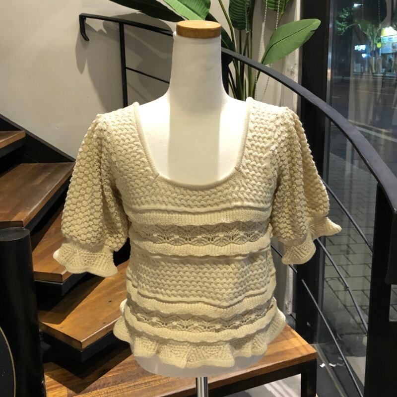 スタイルジャカードメッシュセーター カラーショートスリーブオータムトップス 秋物 スクウェア ICC_レディース2236580