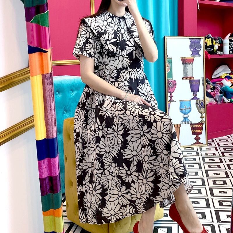 スタンダードレースルーズ薄手ハイウェストウェストドレス レトロ フラワーデザイン ステッチ ICC_レディース4577168