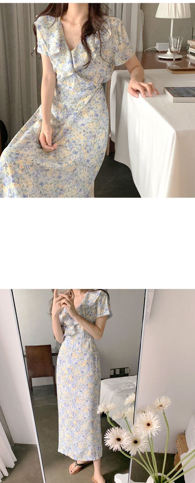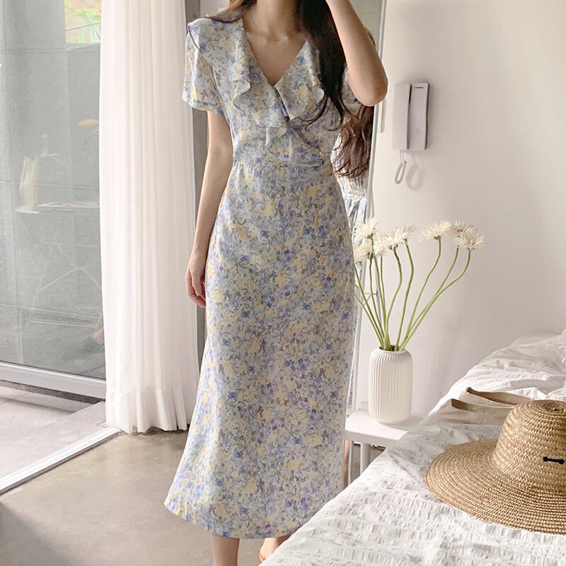 サマースタンダードスカート ロングシフォンフローラルドレス レトロ 夏物 花柄 フラワーデザイン 左左右右8745982