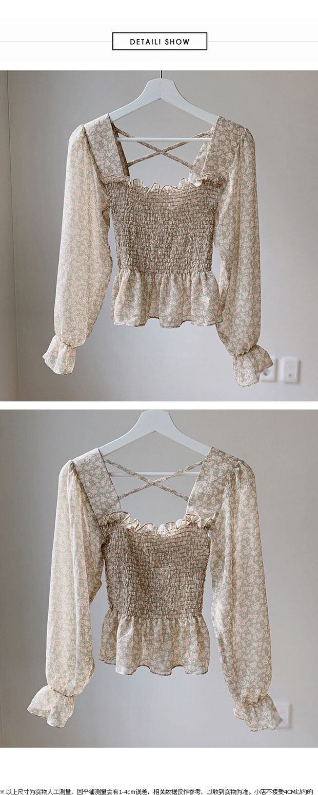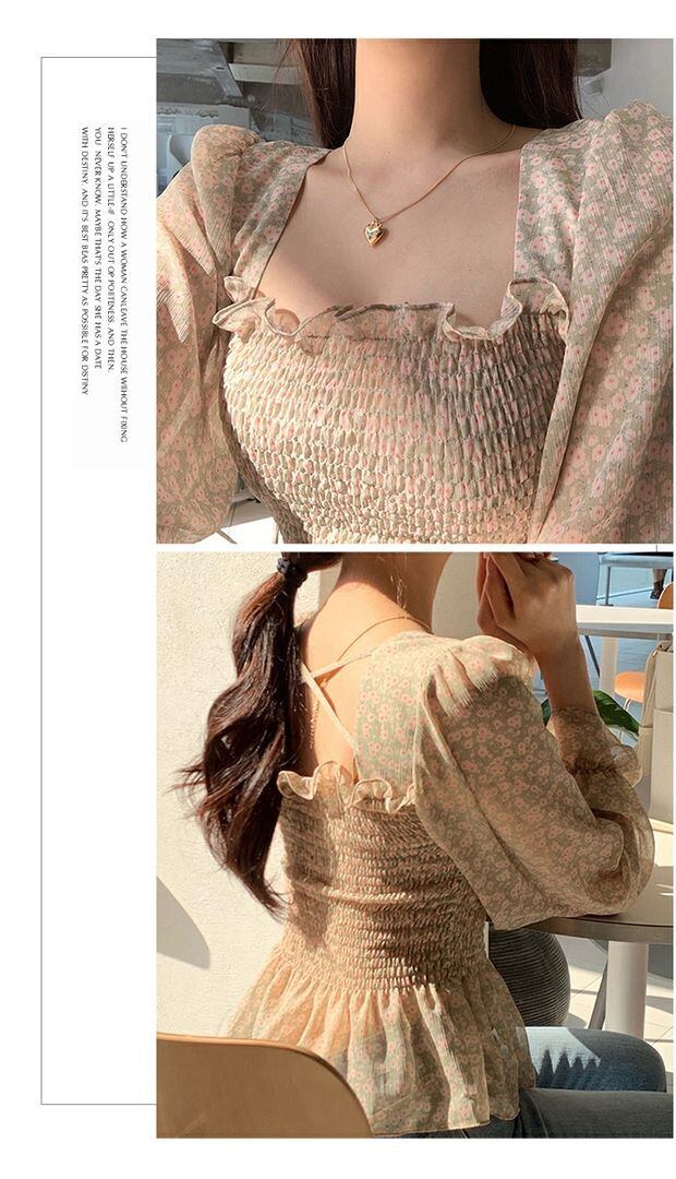 オータムスタンダードブラウス スリム薄手フローラルシフォンシャツ レディース ロング レトロ 大人ガーリー スウィート キュート カジュアル 秋物 花柄 左左右右3522992