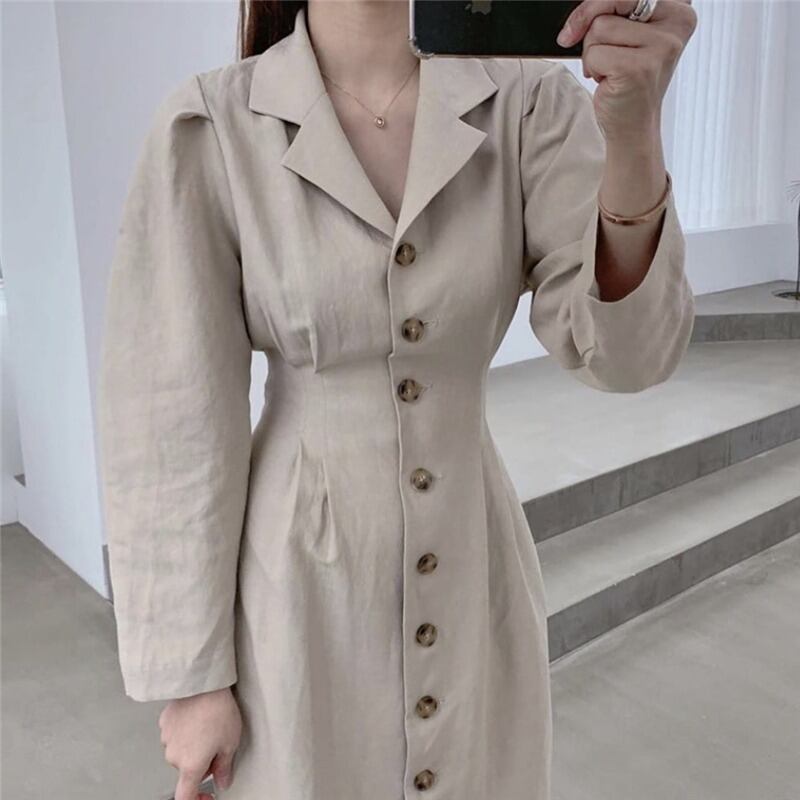 オータムスタンダードロングウェストドレス レトロ 秋物 ICC_レディース3111143