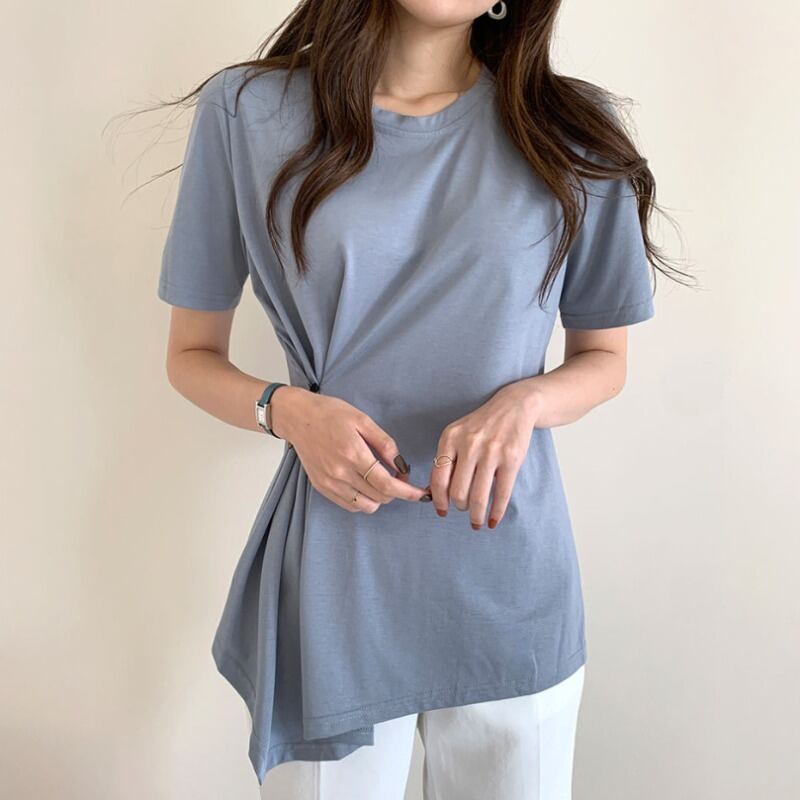 サマースタイルサテンバックルウェストトップス レディースTシャツ シャツ 夏物 ICC_レディース2092899