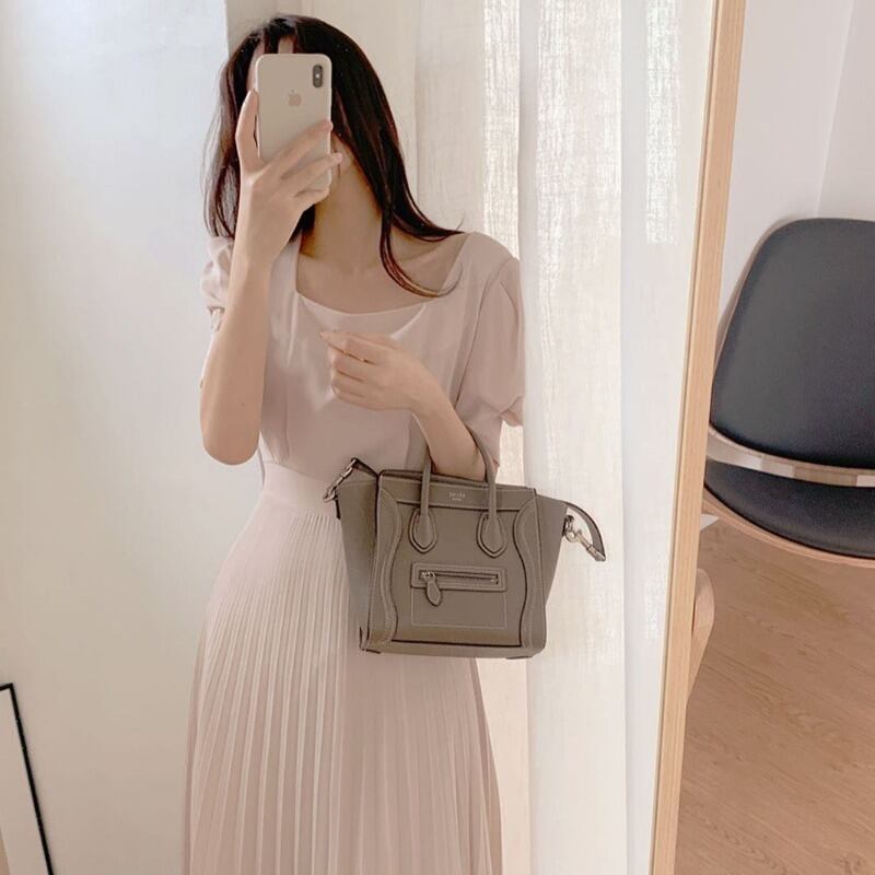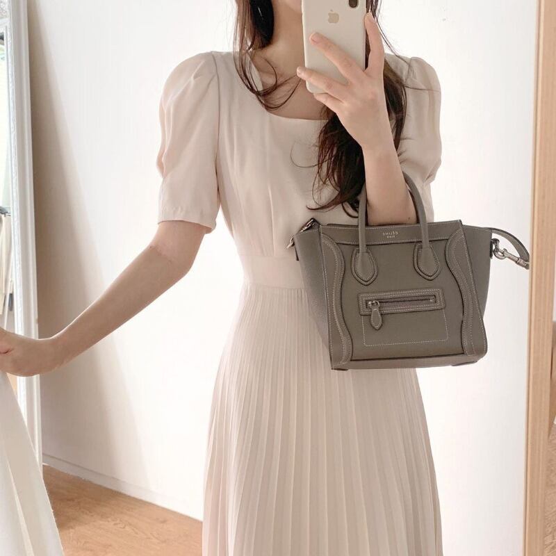 サマースタイルスリーブプリーツドレス ウェストスカート 夏物 スクウェア ICC_レディース9891597