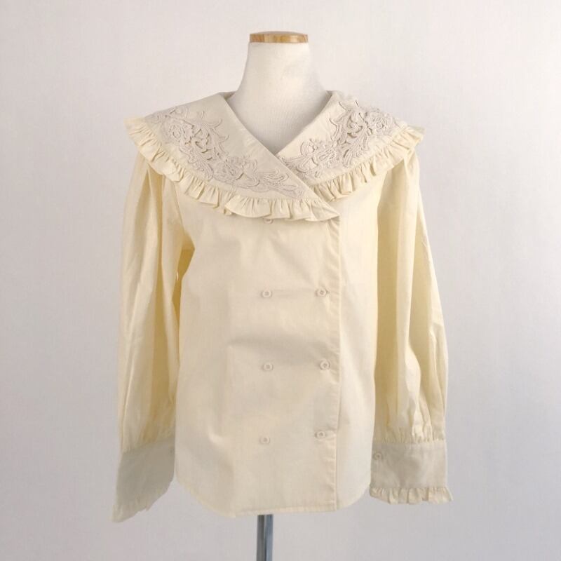 オータムスタイルVネック刺繍薄手ダブルブレストブラウス シャツ ロング 秋物 ICC_レディース9687486
