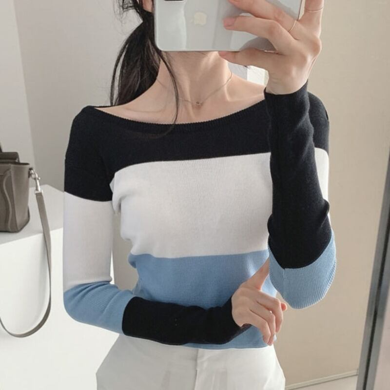 ニットセーター オータムカラーストライプTシャツ トップス ロング 秋物 ICC_レディース5954151