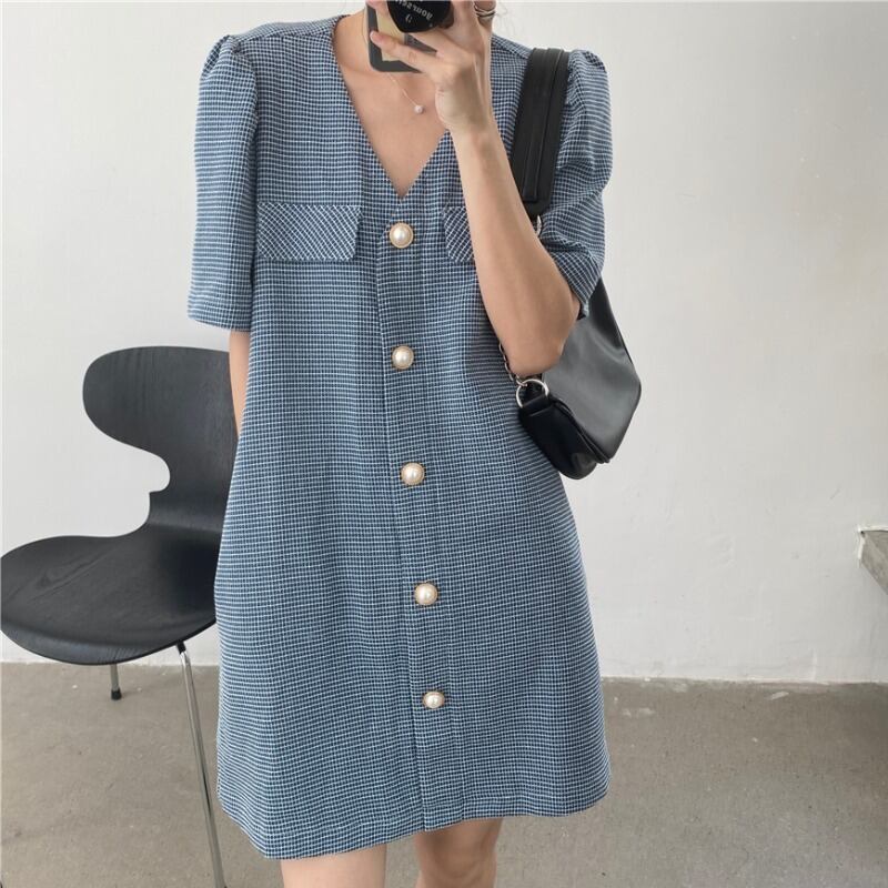 サマードレス ルーズ薄手ブルーAラインスカート 夏物 ICC_レディース0513733
