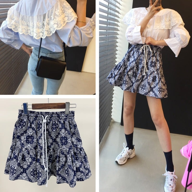 オータムレーススタイルシャツ ハイウェストウェストパターンストレッチスカート エラスティック 伸縮 秋物 ICC_レディース3431272
