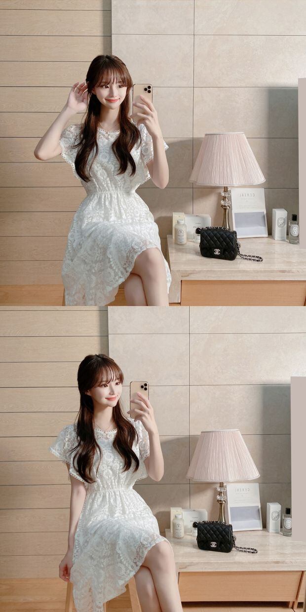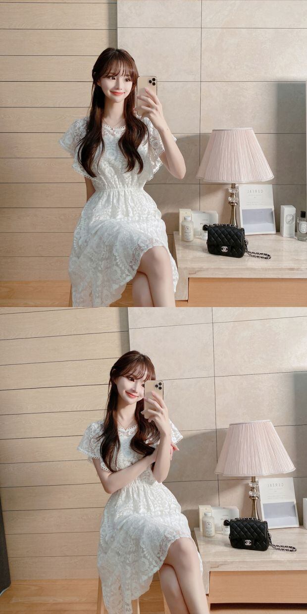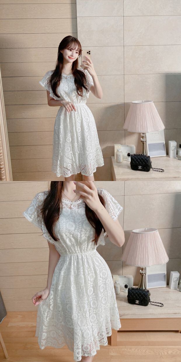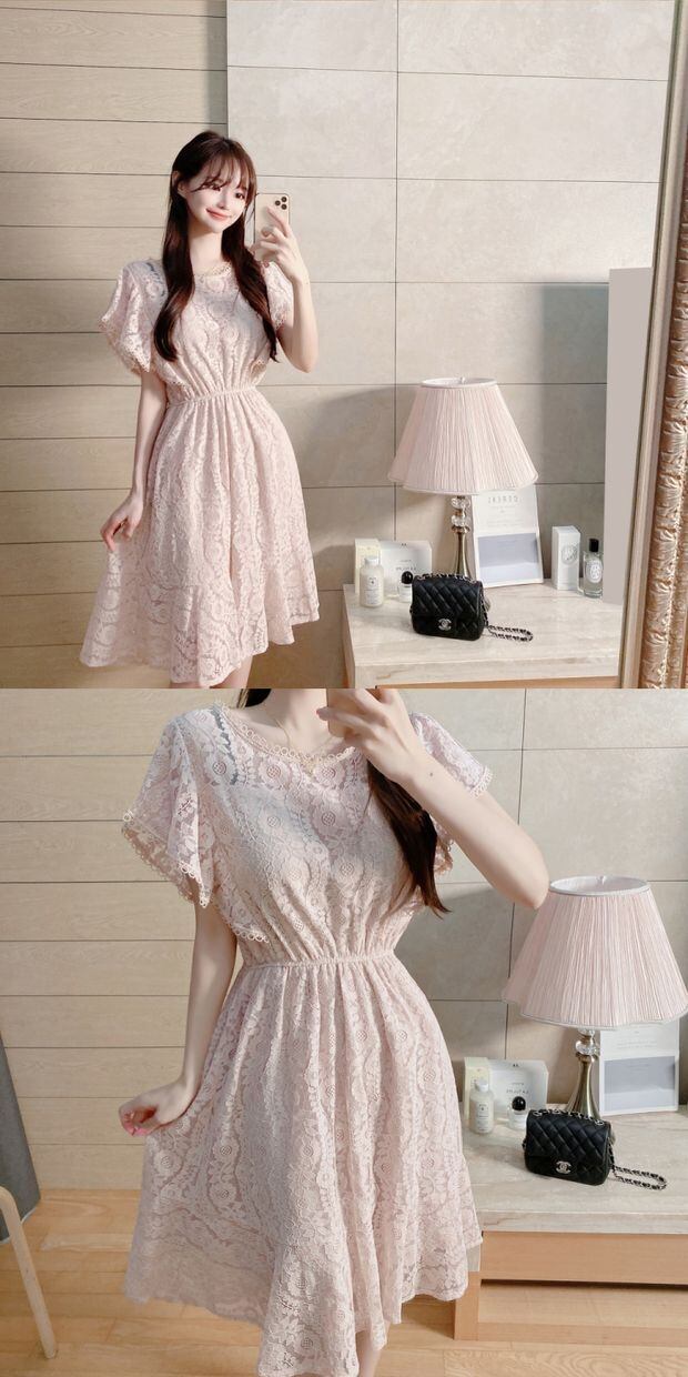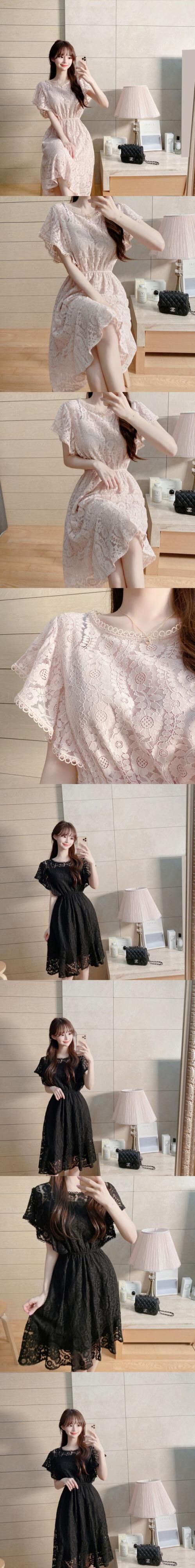 サマースタンダードレーススカート ウェストドレス レトロ 大人ガーリー スウィート キュート カジュアル 夏物 左左右右4526388