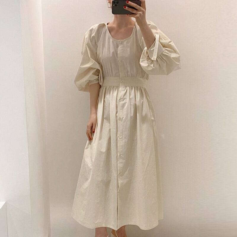 オータムラウンドネックウェストシングルブレスト薄手ドレス レディース 秋物 Oネック ICC_レディース8994637