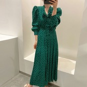 オータムスタイルVネック薄手プリーツスリーブ 秋物 スカート ICC_レディース3150444