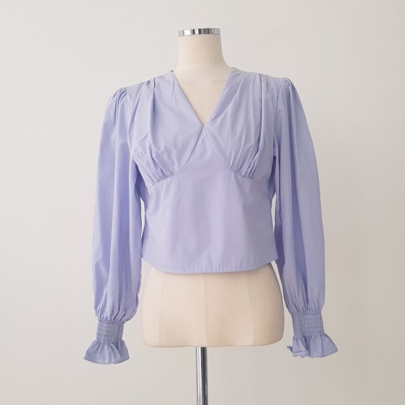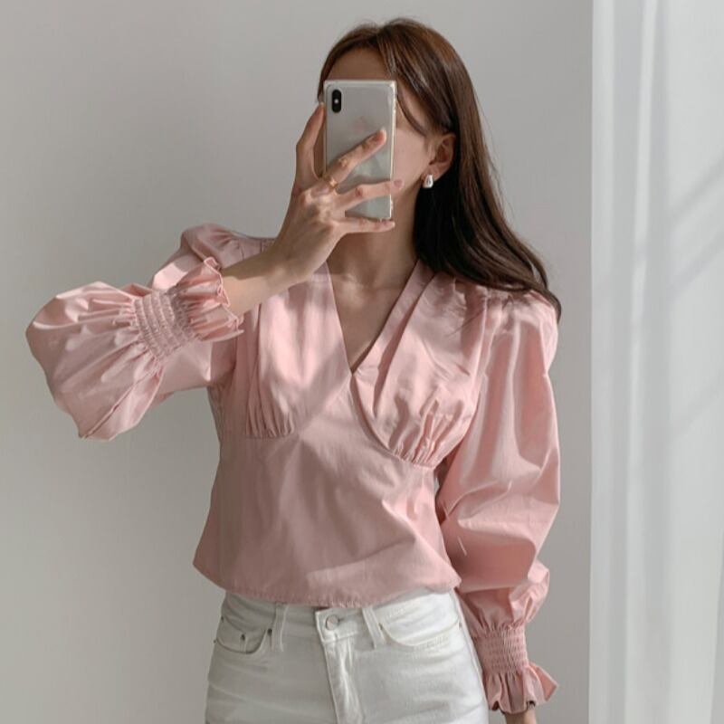 オータムスタンダードVネックスリーブトップス 薄手シャツ レディース ピンク レトロ 秋物 ICC_レディース0880438