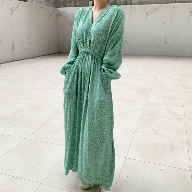 スカート Vネックルーズ薄手ロングドレス レディース ICC_レディース9018245