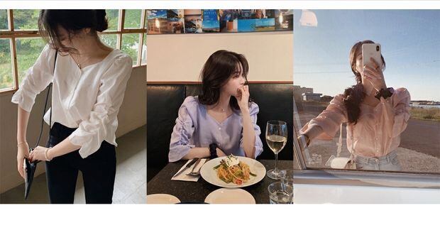 オータムトップス シャツ Vネックレディース 大人ガーリー スウィート キュート カジュアル 秋物 左左右右0150010