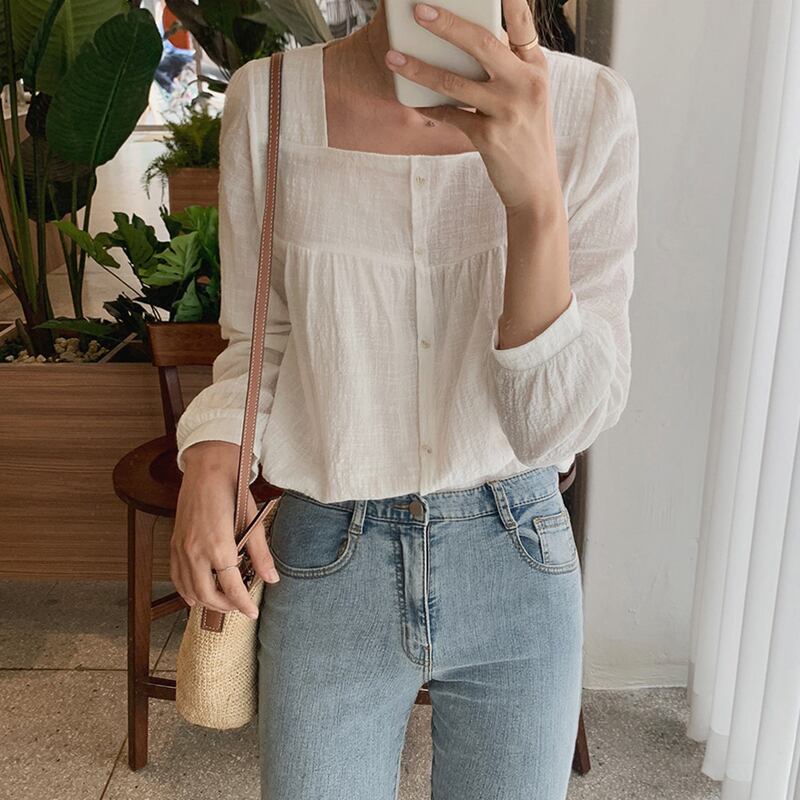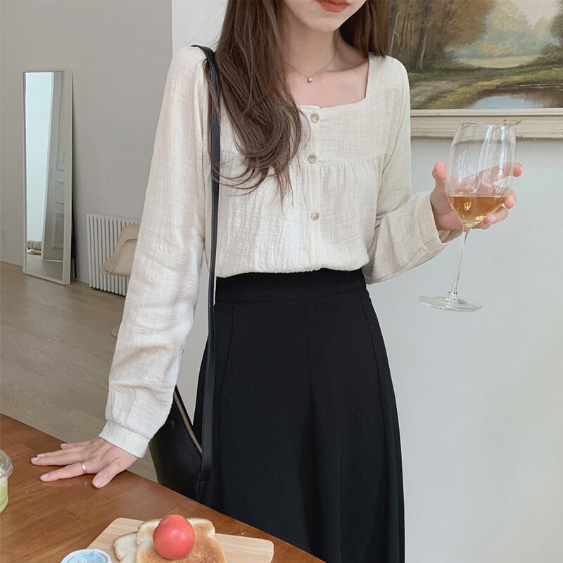 オータムスタンダードトップス シャツ ロング コットン レトロ 秋物 左左右右6260137