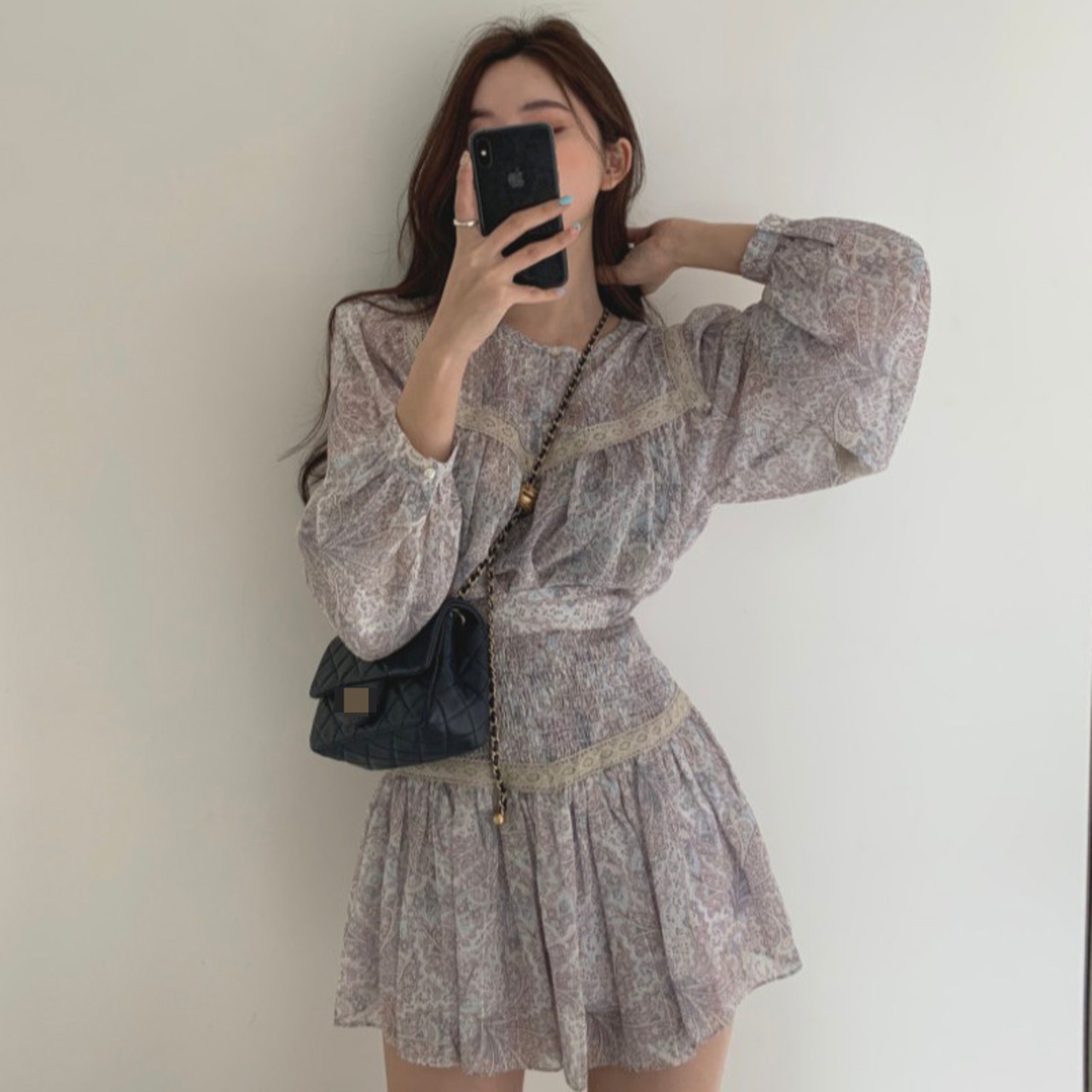 スリーブシャツ スタンダードハイウェストウェストスカート ランタンスリーブ レトロ エレガント ICC_レディース8642450