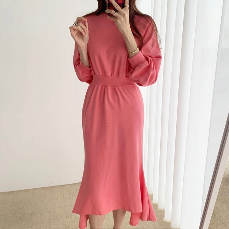 ラウンドネックストレッチウェストセーター ドレス エラスティック 伸縮 Oネック ICC_レディース3038879