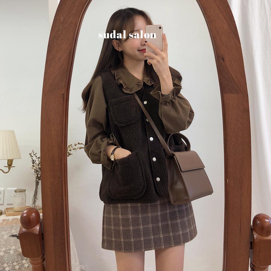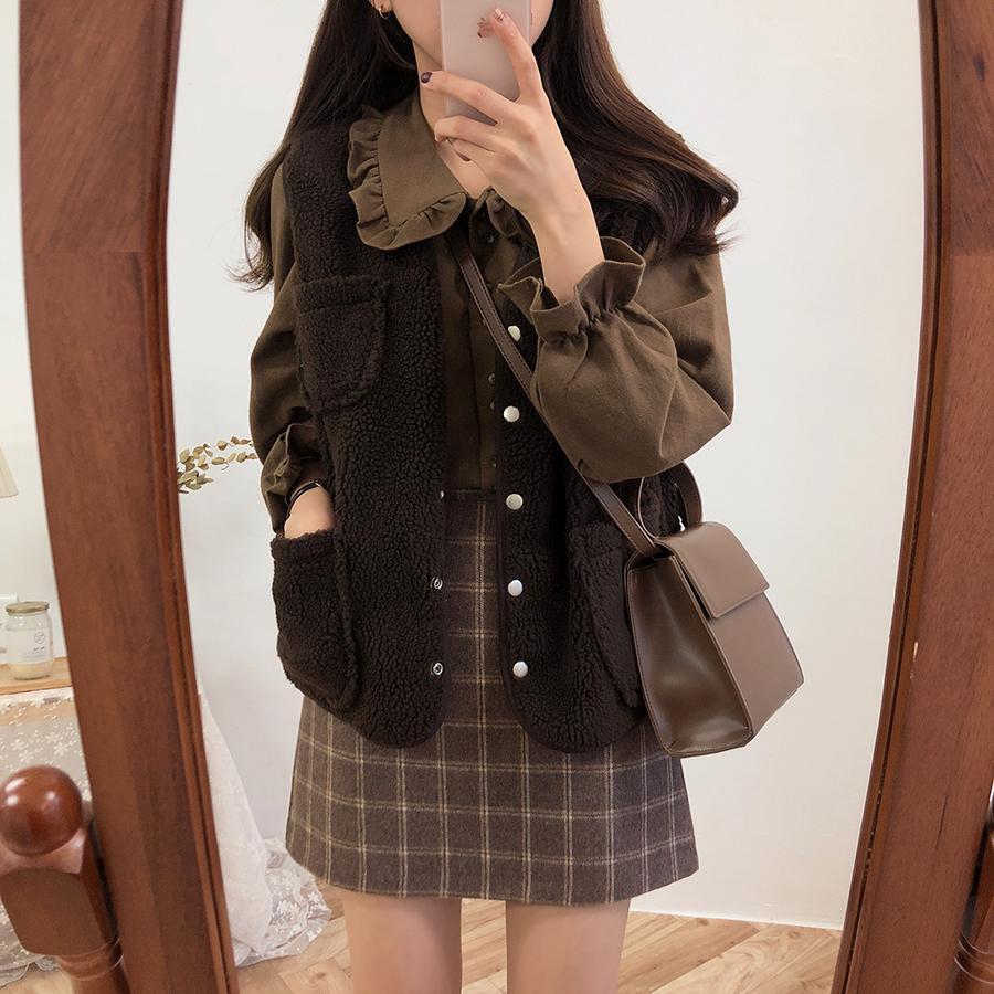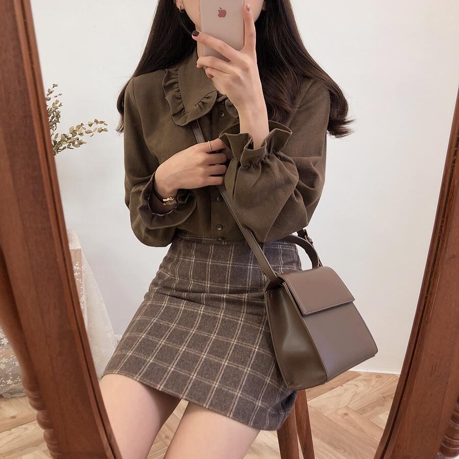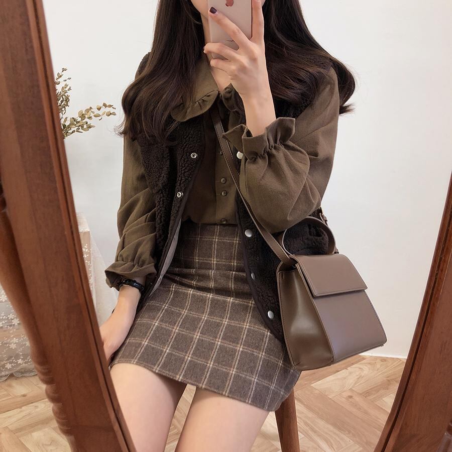 格子柄スカート オータムウィンターAラインハイウェストウェストスタンダード レトロ 秋物 冬物 左左右右1557562